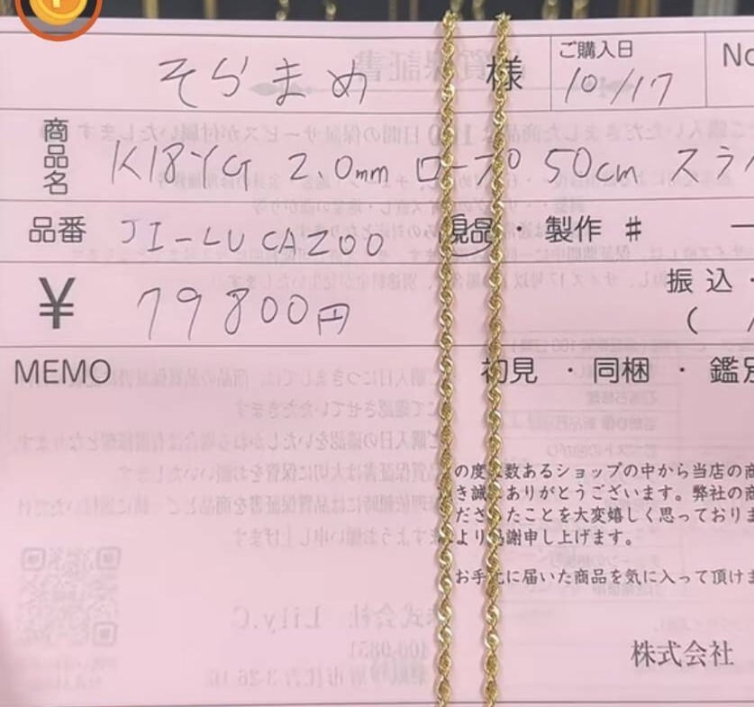 そらまめ様専用_K18ロープ50cm