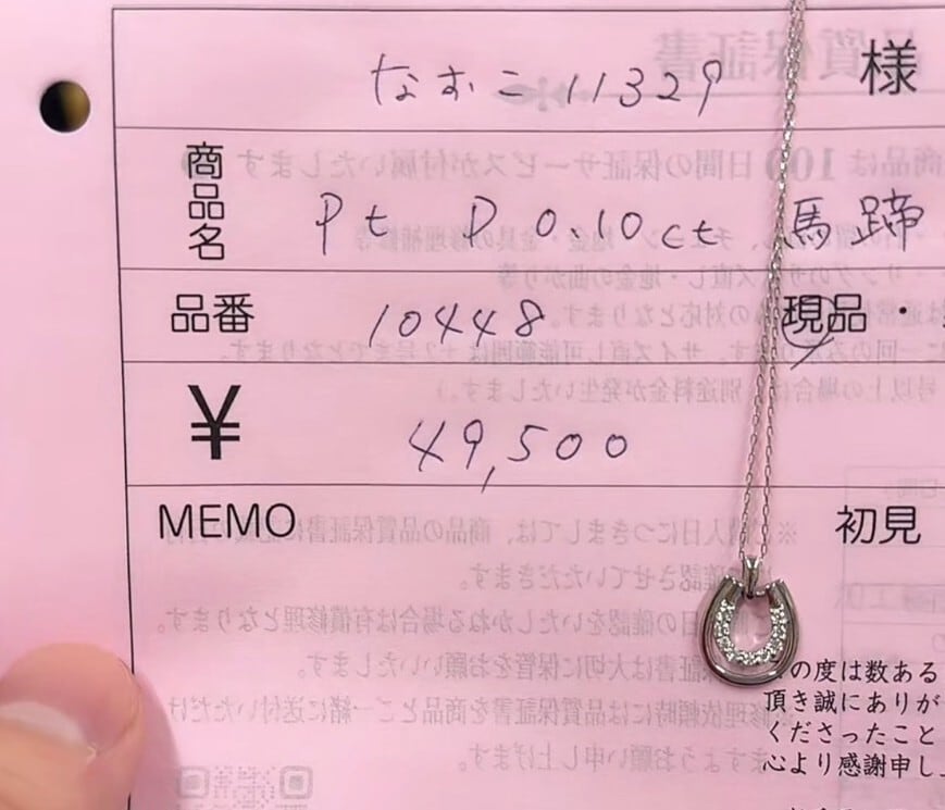 なおこ11329様専用_Pt馬蹄D0.10ctペンダント