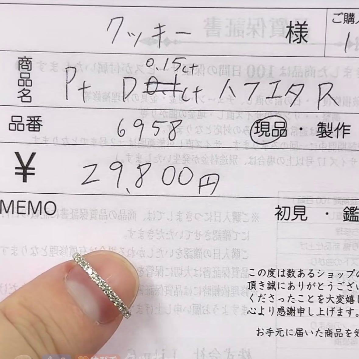 クッキー様専用_PtHC0.15ctハーフエタニティ