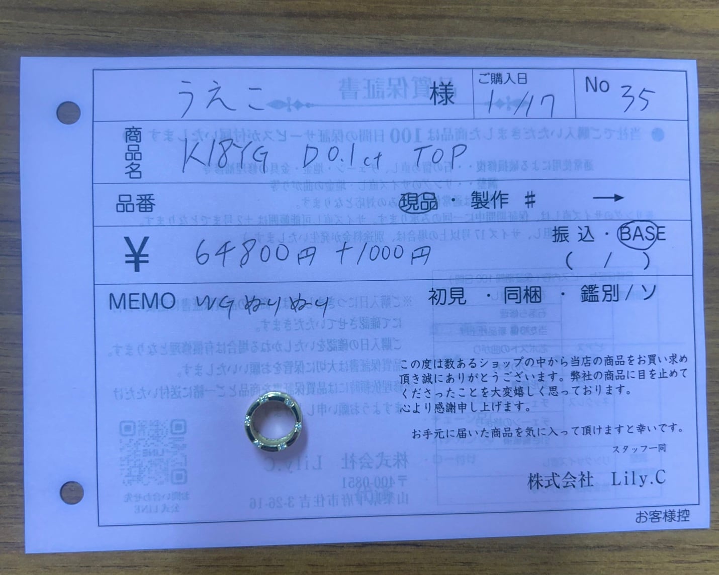 うえこ様専用 K18YGD0.1ctペンダントトップWGメッキ