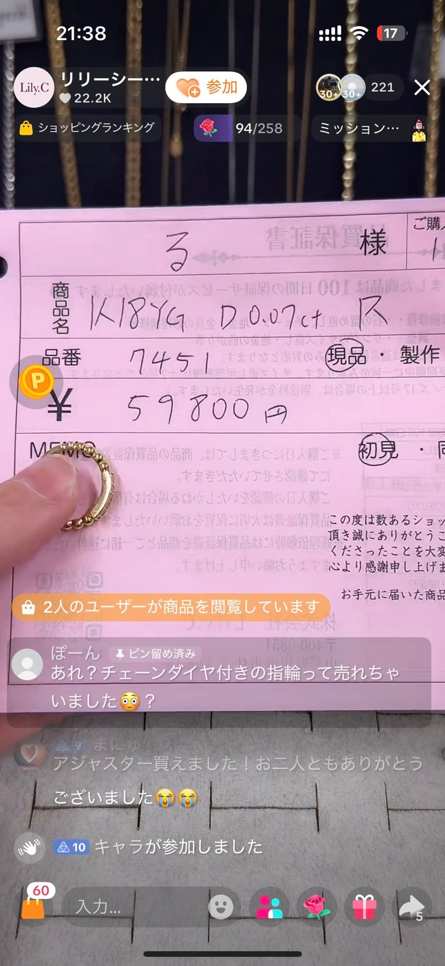 る様専用 K18YGD0.07ctリング