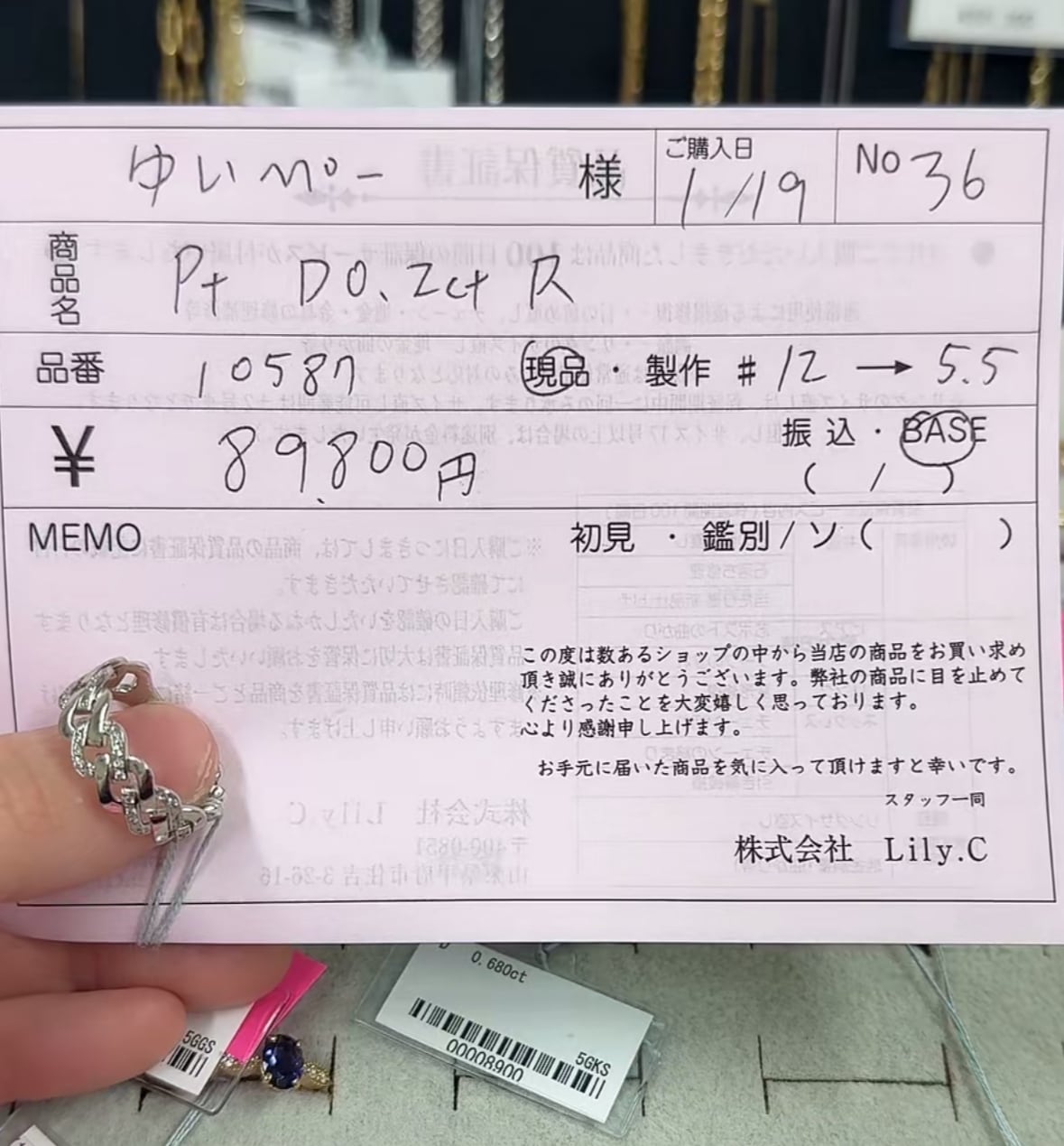 Pt D 0.20ct リング 89800