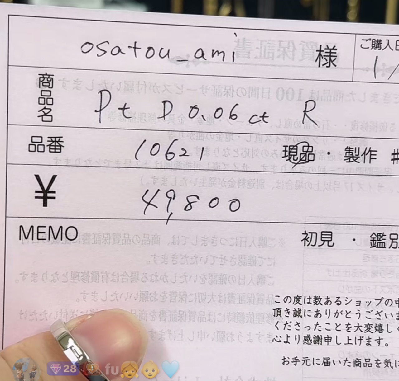 osatou_ami様専用_Pt D0.06ct リング