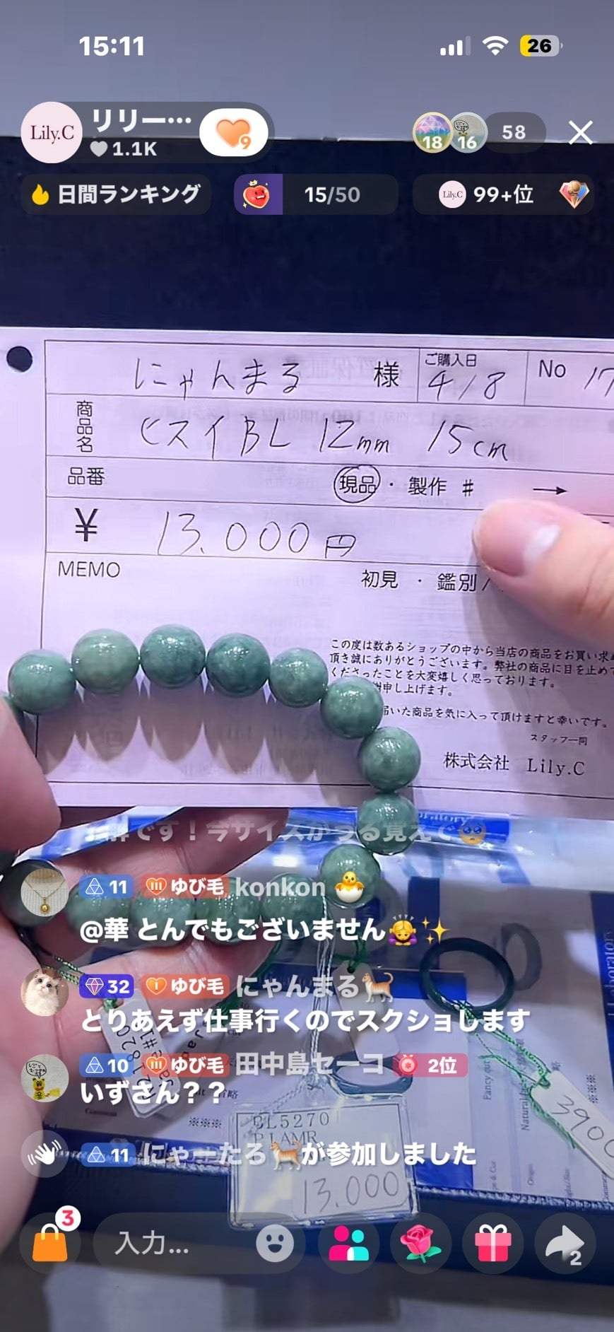 にゃんまる様専用 ヒスイブレスレット12㎜15㎝