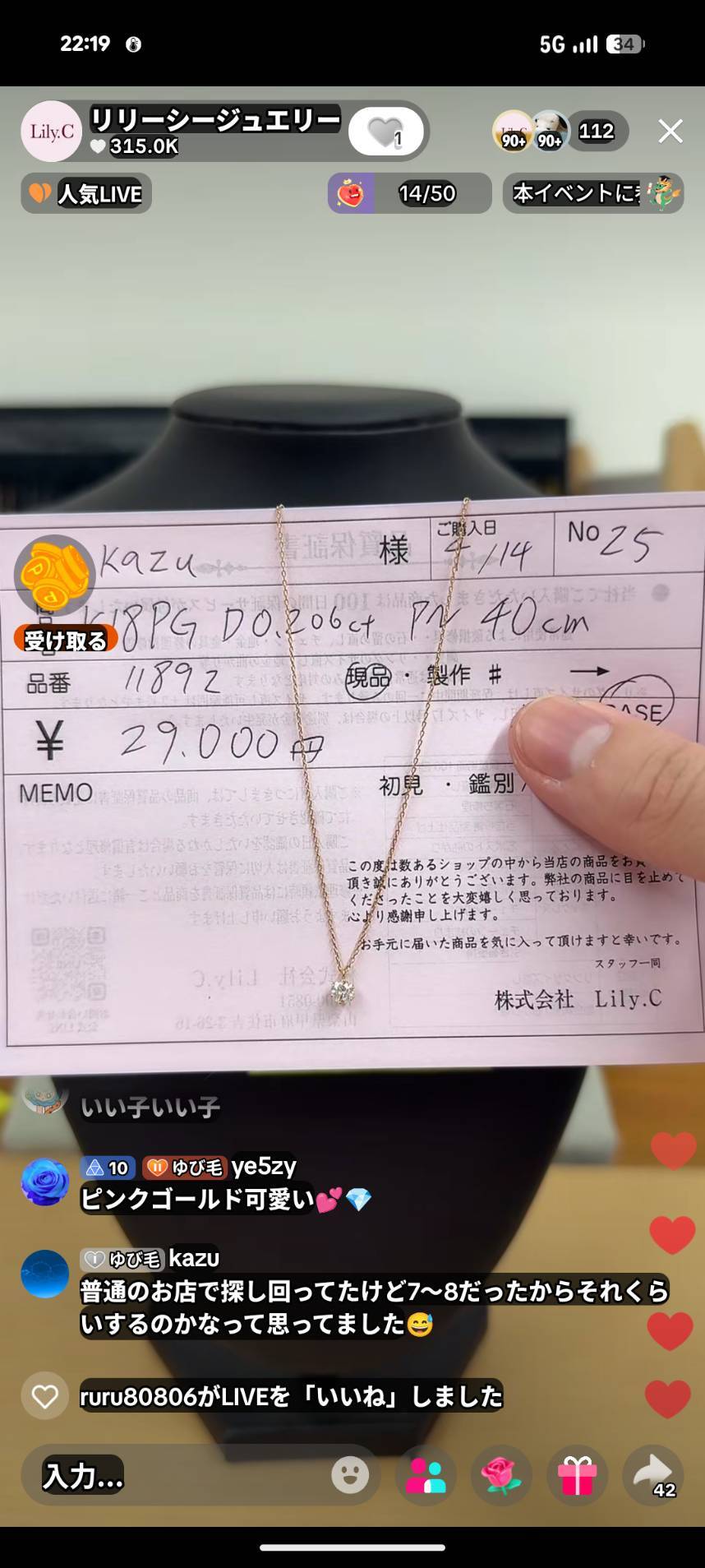 ネックレスのダイヤ交換を希望される場合は、金額を変更いたしますので、